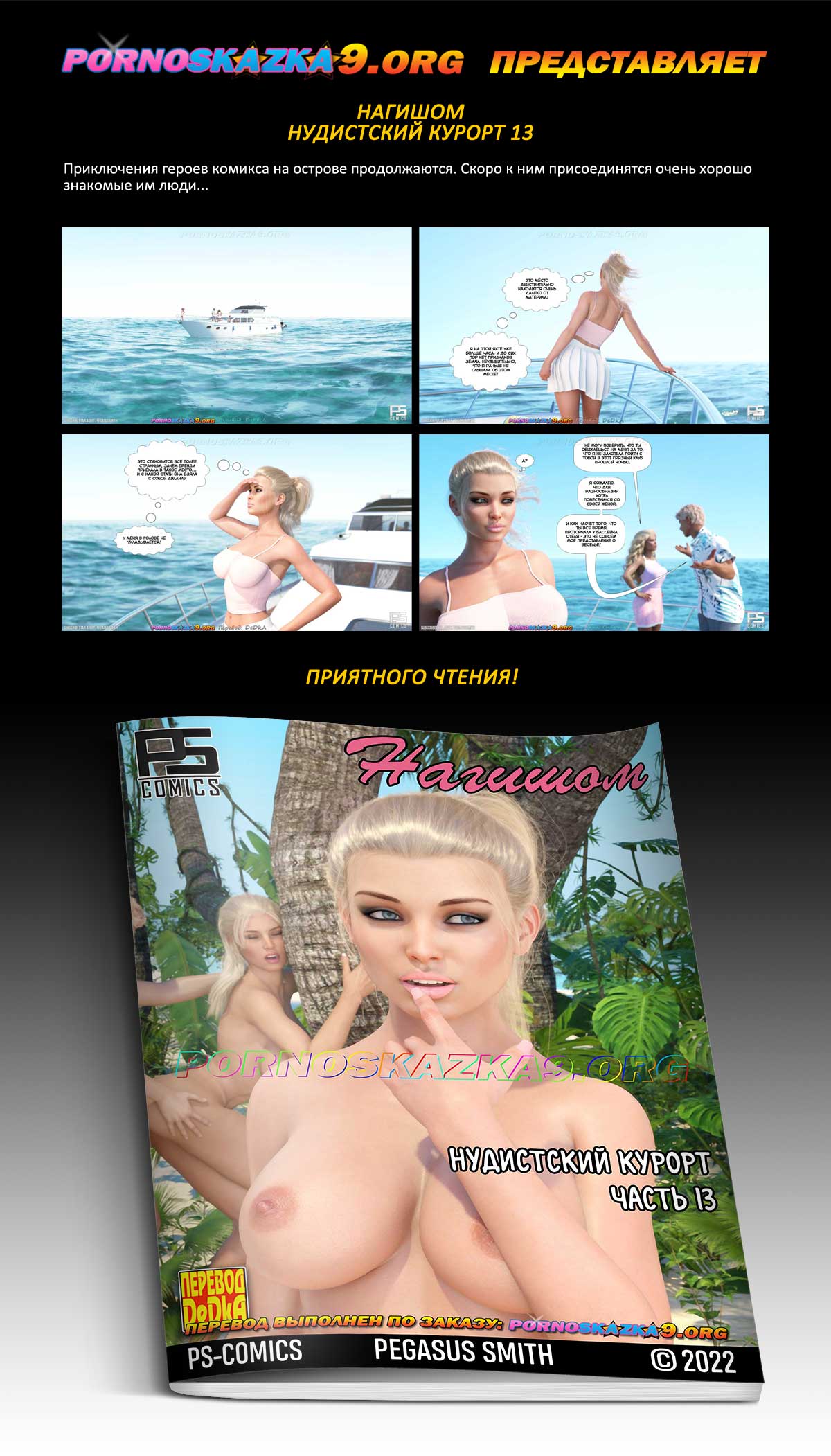 Порно комикс «Нагишом. Нудистский курорт. Часть 13». Приключения героев комикса на острове продолжаются. Скоро к ним присоединятся очень хорошо знакомые им люди…